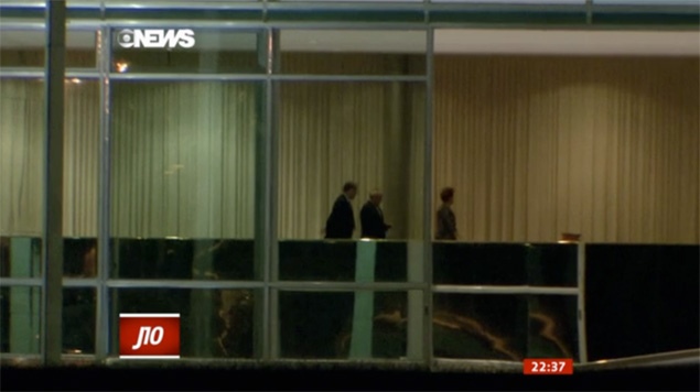 Em imagem captada por cinegrafista da Globo, Dilma é seguida por Lula e Fernando Pimentel